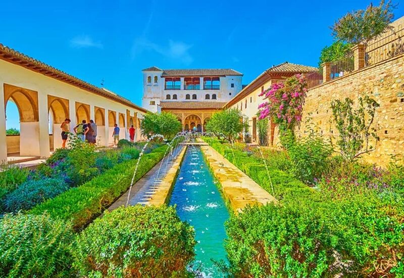 Kahvaltının ardından Endülüs bölgesinin en önemli yapısı olarak adlandırabileceğimiz Al hambra Sarayı’na doğru yola çıkıyoruz. Granada’nın göz alıcı manzarasına sahip olan Sierra Nevada dağlarının eteklerinde yer alan bu ihtişamlı yapıyı gezmeye, Alcazaba’yı dışarıdan görerek başlıyoruz. Bu tarihi kale, sarayın savunma amaçlı yapılan kısmı olup, muazzam surları ve etkileyici kuleleriyle dikkat çekmektedir. Turumuza, sarayın hemen yanında bulunan Generalife Bahçeleri ile başlıyoruz. Bu büyüleyici bahçeler, zarif havuzlar, çiçekli avlular ve huzur veren yeşil alanları ile bilinmektedir. Bahçelerde dolaşırken, Endülüs sultanlarının dinlenme ve eğlenme alanlarında nasıl vakit geçirdiğini hayal edebilirsiniz.